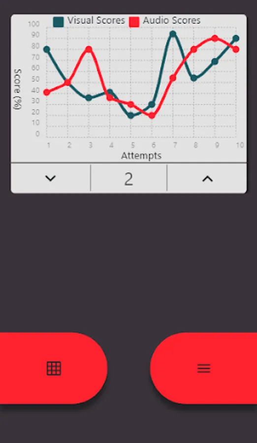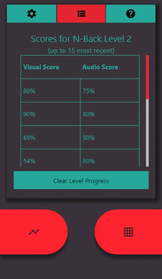 At the same time, press the sound icon only when you hear the same letter that you heard 2 turns ago, for level 2. For level 3, press the sound icon only when you hear the same letter you heard 3 turns ago, and so on.