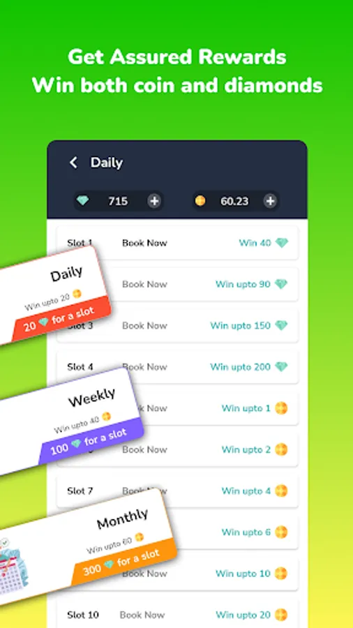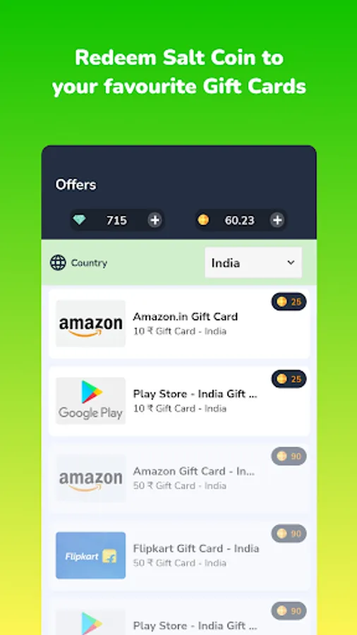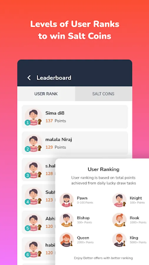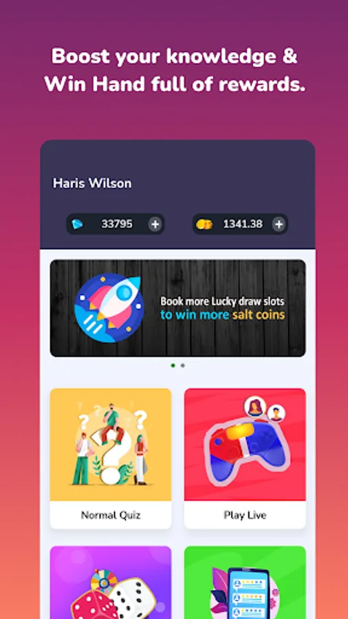 Participate in Quiz contest and Earn Diamonds for free. Use Diamonds to enter Lucky Draw Contests, try your luck and win Salt coins. Enter live quiz contests, Compete one on one against random users and win unlimited coins and diamonds.