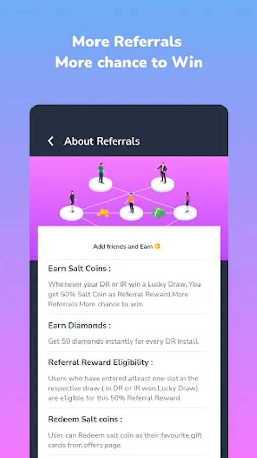 Refer and add friends. Get Rewards when your friends win in a lucky draw.