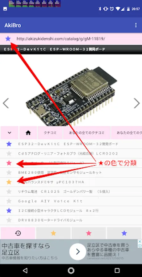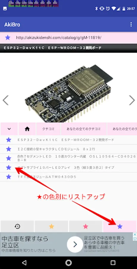 You can also list in this app by adding a star on the product page. On the product page, a star will appear to the left of the URL, so tap it to color it. You can make a list by color-coding what you buy when you go to the store, what you buy online, etc. in 3 colors. You can send the created list by email.