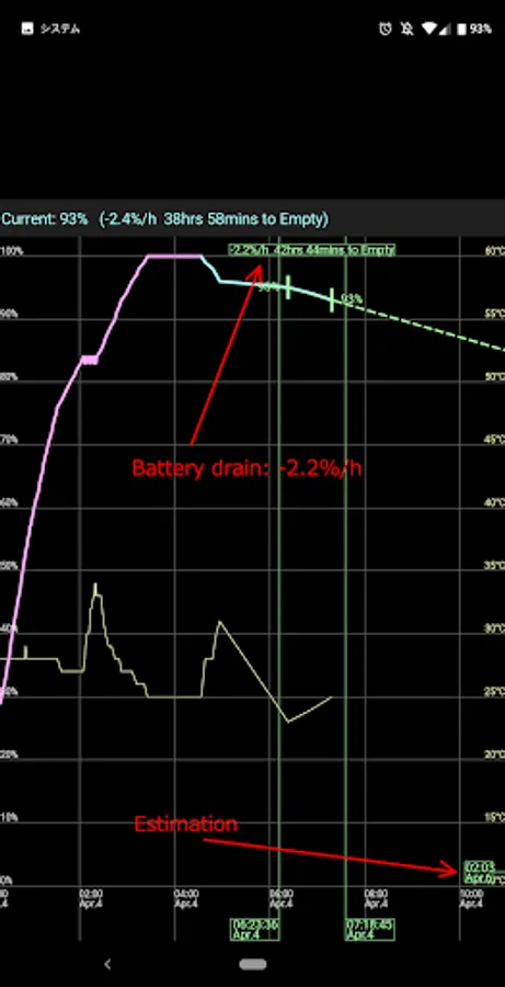 *** If the graph is not updated, please disable the battery optimization for this app by the Android settings. You can open it from the menu of this app. ***