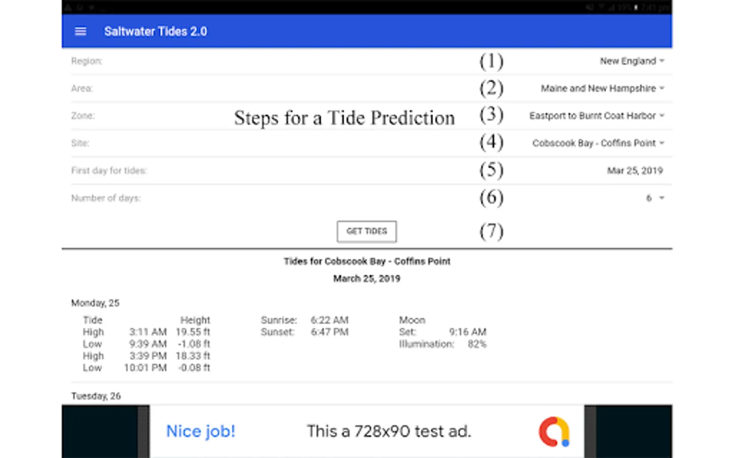 The Saltwater Tides app provides the same tide predictions as the website, saltwatertides.com. The website has been providing tide predictions along the US coast line since 2000 and provides millions of predictions each year.