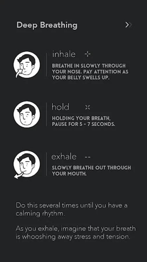 1 minute a day. Invest it to the 'Deep Breathe Exercise' that will calm down you body and mind.