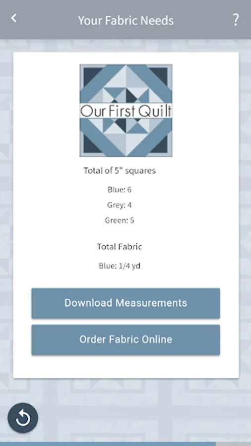 The app walks you through four simple questions, just tap on your answer and get the exact fabric measurements you need.