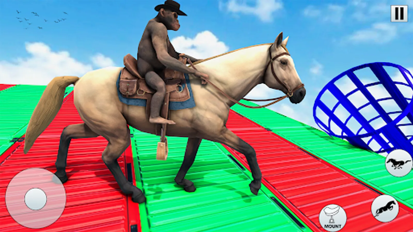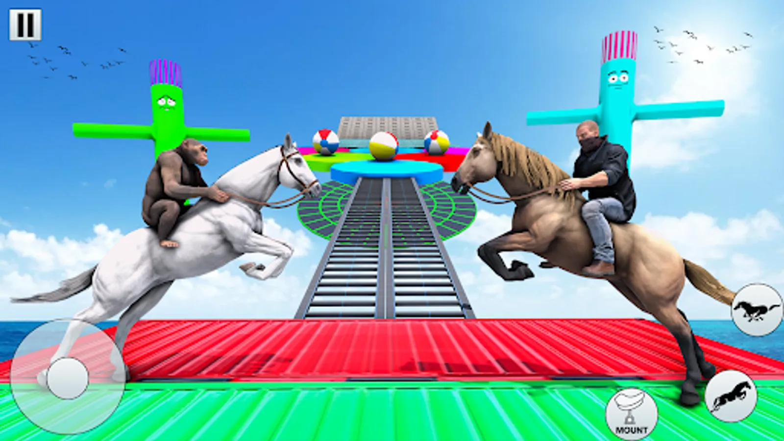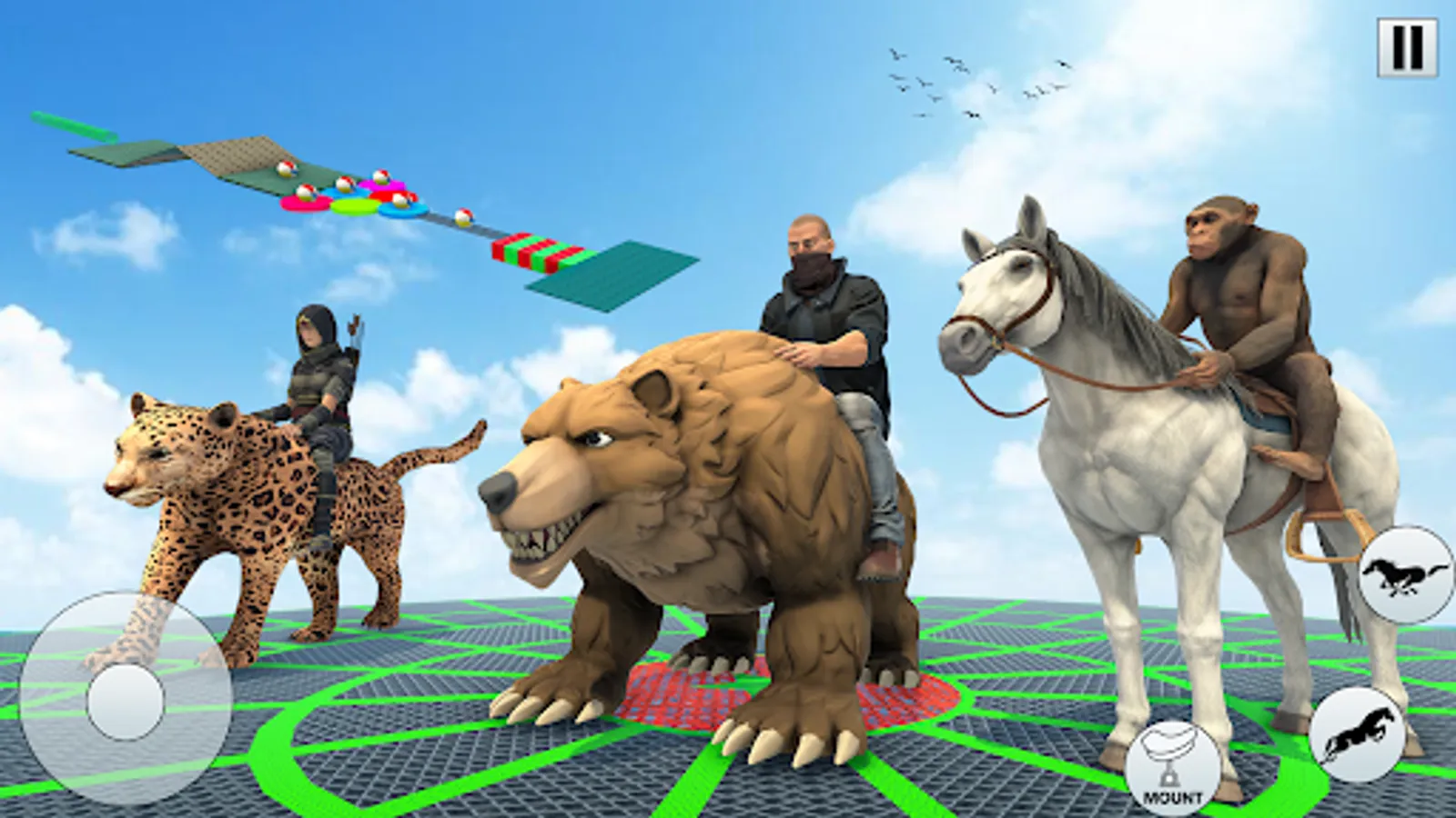 GT Horse riding simulator 3D is an exhilarating and immersive horse race games. It takes players on a thrilling animal adventure of Horse breeding games and animal battle filled with jungle horse stunts and horse camp. Set in a vibrant and dynamic horse world. This GT horse simulator of animal fight allows players to take control of four incredible animals. The agile and cunning wolf simulator, the powerful and majestic tiger simulator and lion simulator in horse games, the swift and nimble GT horse riding simulator, and the mischievous and intelligent monkey simulator of GT Wild horse racing games.