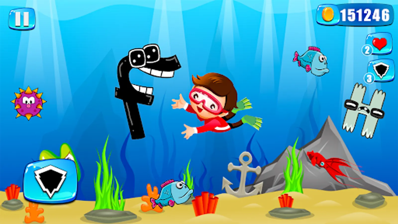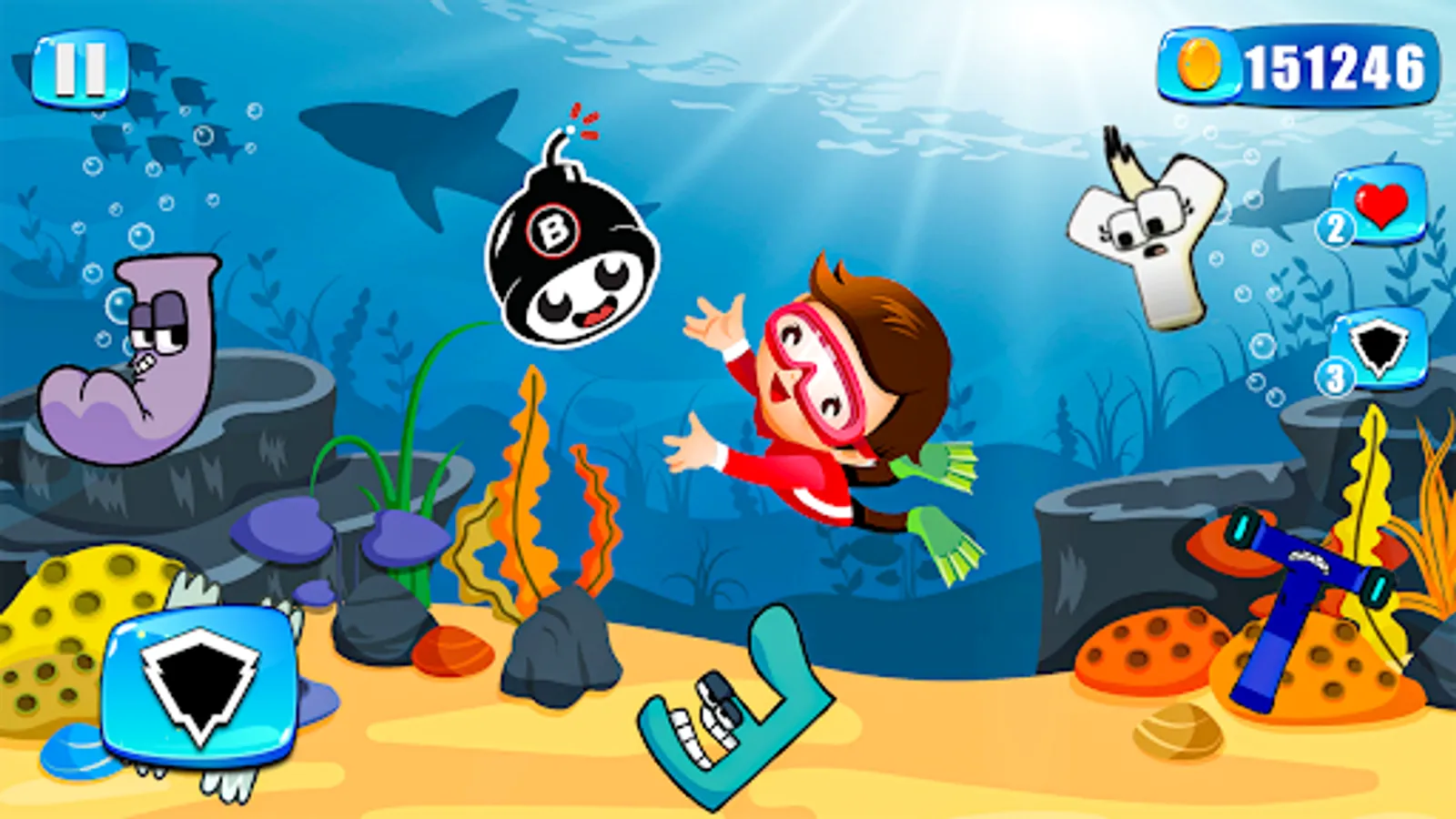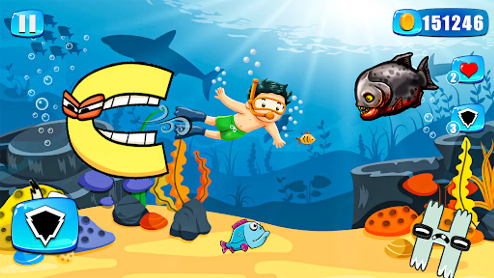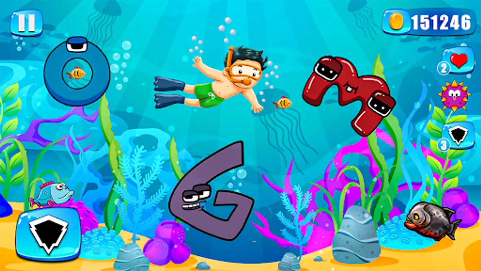 We’ve added these movements to make it easier for you to avoid colliding with octopus, fish or sea monster in this sea games of ABC. You can collide with smart alphabets and use them to your advantage by collecting them in water game of sea games.