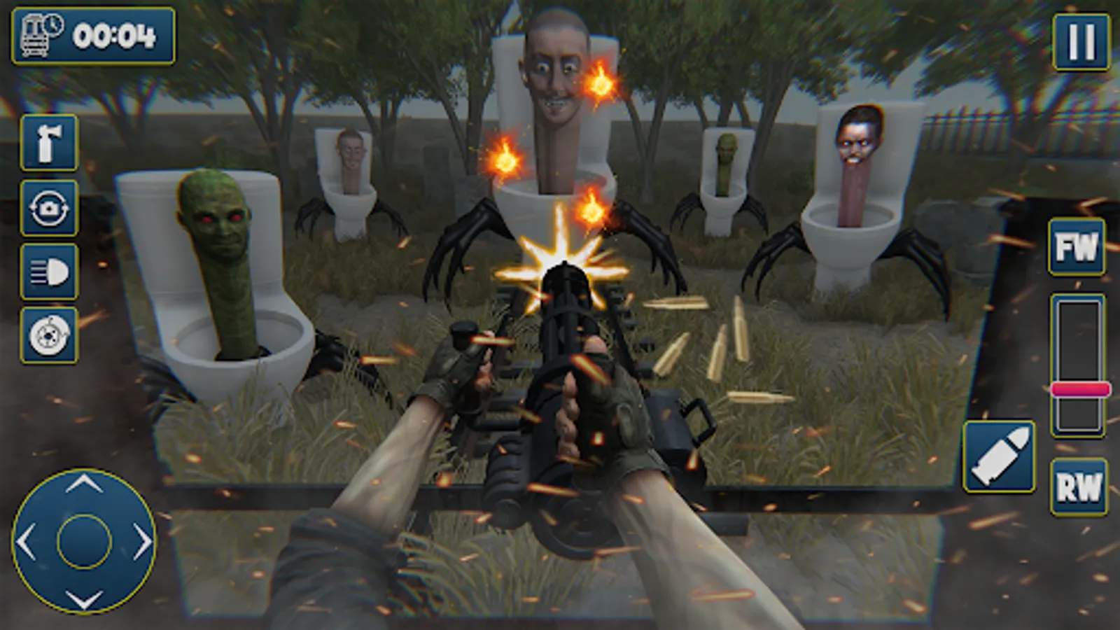• Intense FPS Survival Battles: Engage in intense Toilet battle against a horde of scary Toilet Monsters and Toilet Head creatures, each with unique abilities and tactics.