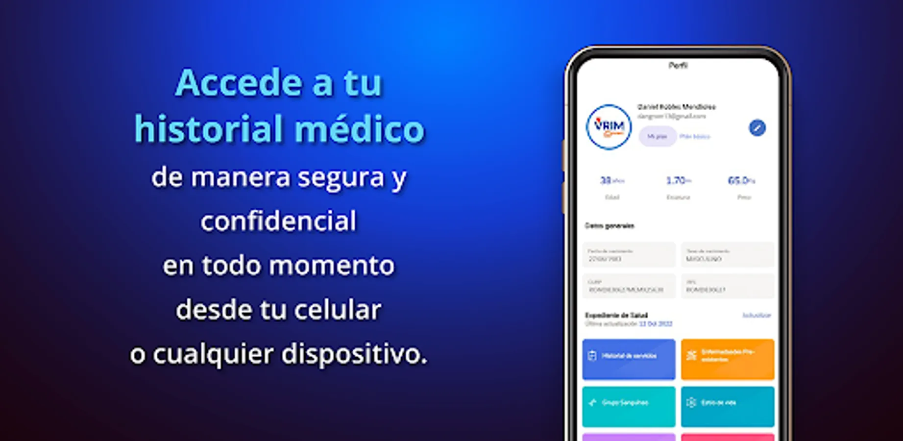 Access your medical history safely and confidentially at all times from your cell phone or any device.