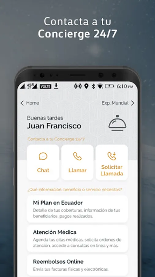 Learn about all the benefits and services in Ecuador and the World that your Experience World plan offers you in a single application.