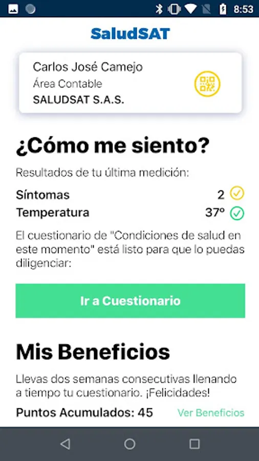 SaludSAT is your best ally to comply with biosafety protocols, it is designed to help your company, institution, etc. to have real-time information on the health situation of people according to the most common signs and symptoms of a disease.