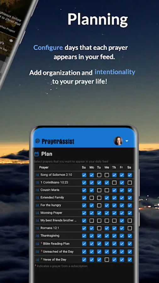 • Determine which days of the week that you want each prayer to appear in your prayer feed