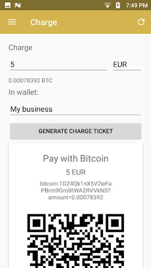 • Create bitcoin payment link using any of the available currency. Send the payment link generating a QR code or sharing with any installed app on your phone or PC.