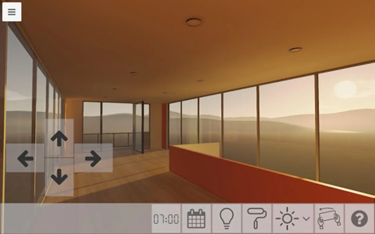 • Get inside the building and go for a virtual walk. You can move and look around freely using the device gyroscope, touch controls or mouse and keyboard.