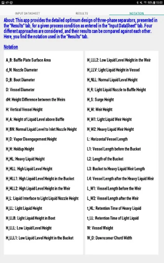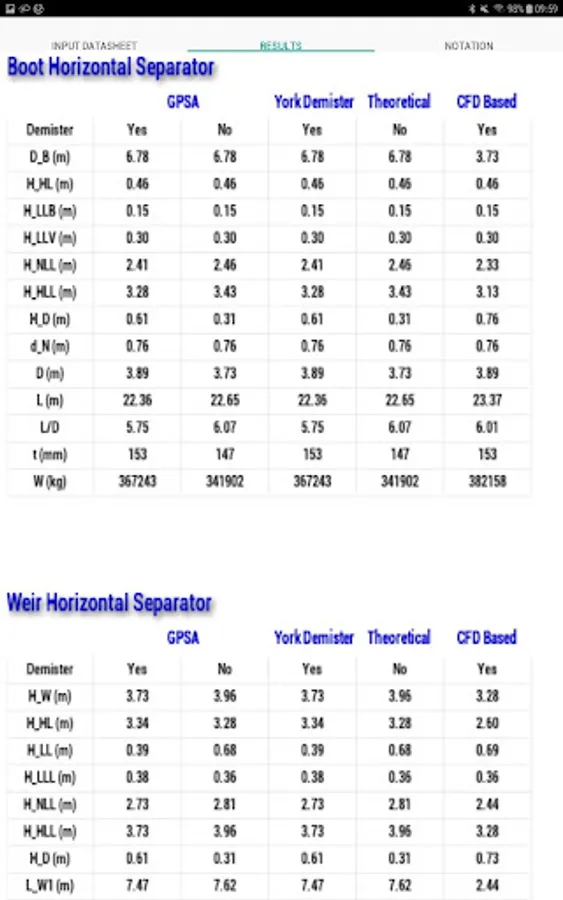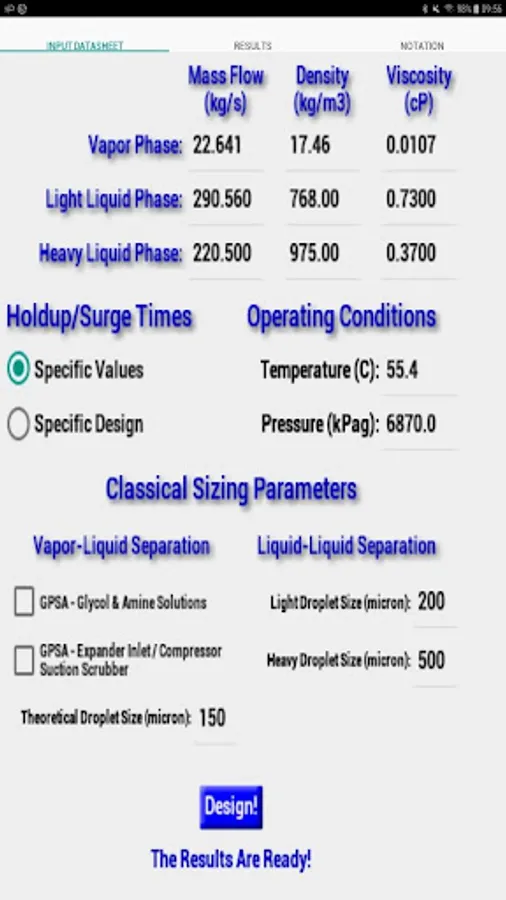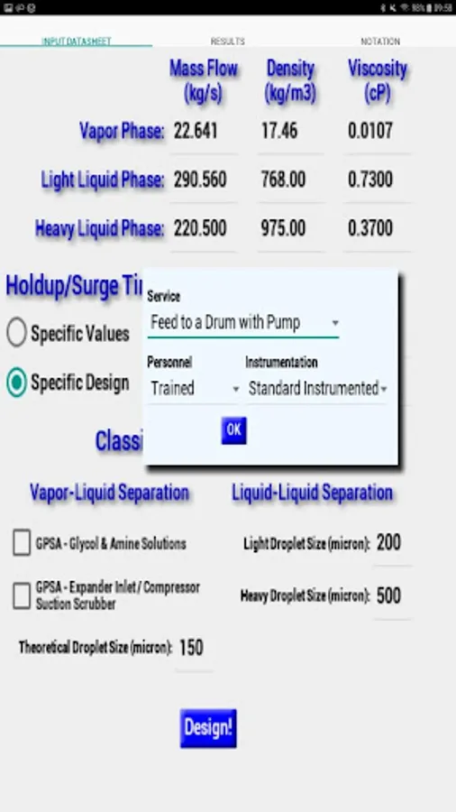 This app provides the detailed optimum design of three-phase separators for any given process conditions. Both vertical and horizontal orientations and various design types, i.e. simple, boot, weir, and bucket & weir, are covered.