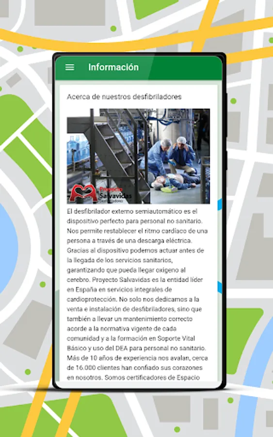 Information of the nearest defibrillators in the list and map with the possibility of adding a defibrillator in your area.