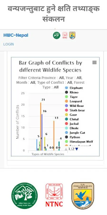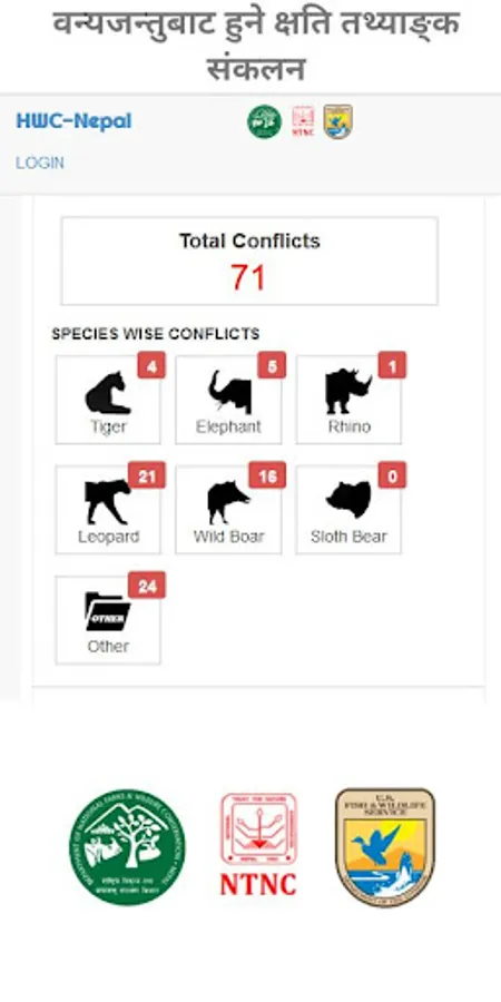 Cloud based human-wildlife conflict data collection and reporting system in Nepal. HWC - Nepal Mobile application is used to collect the data related to conflicts from different users that has provided the access from the authorized organization.