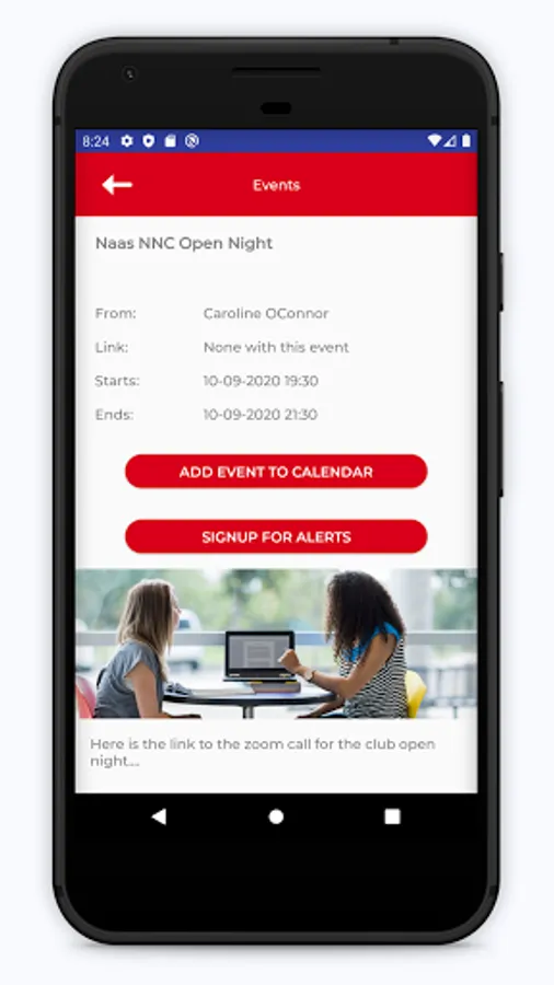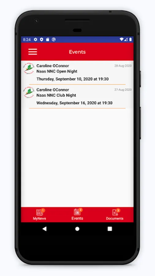 - Events Calendar, with the option to copy events to your phone's calendar.
