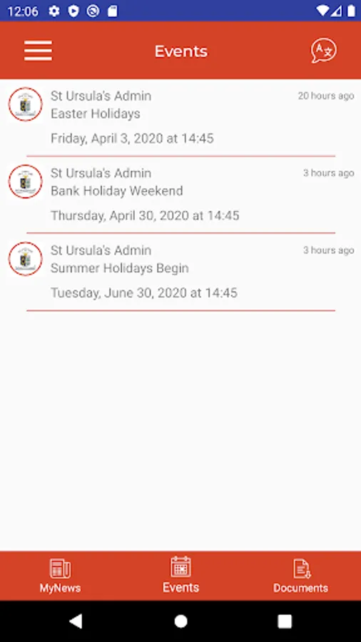 - Events Calendar, with the option to copy events to your phone's calendar.