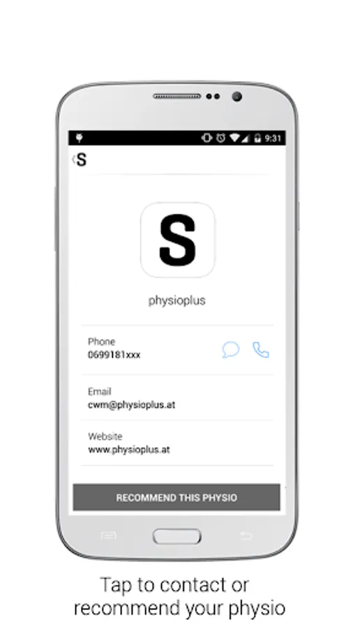 • Contact your physiotherapist with just one tap or recommend him to your friends