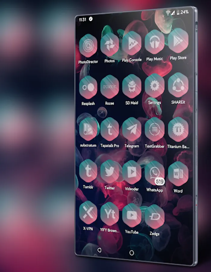 • Apex Launcher [Icon masking and Shader isn't supported by Apex, so un-themed icons have only Icon Back covering them. and I can't remove Shader for Apex Sorry]