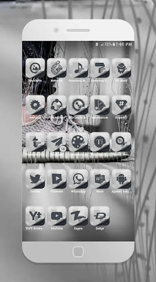 • Apex Launcher [Icon masking and Shader isn't supported by Apex, so un-themed icons have only Icon Back covering them. and I can't remove Shader for Apex Sorry]