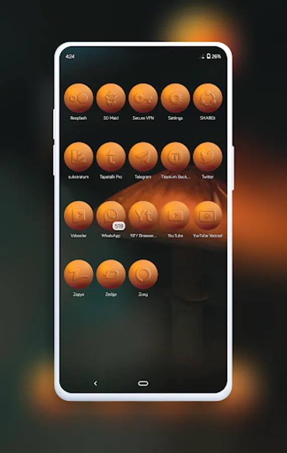 • Go Launcher [Icon masking and Shader isn't supported by Go, so un-themed icons have a circle covering them. You can easily fix this by going into Preferences > Visual settings > under Icons, uncheck 'Show icon base']