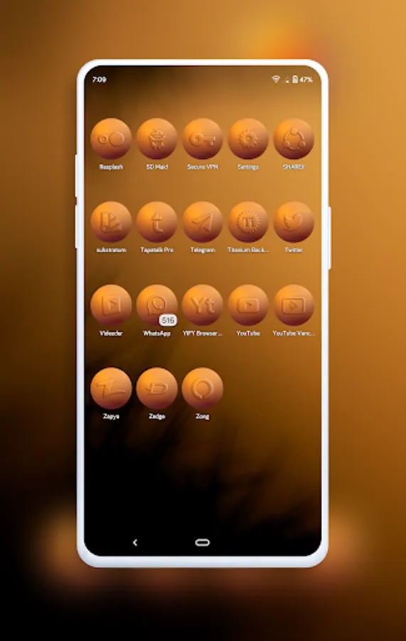 • Apex Launcher [Icon masking and Shader isn't supported by Apex, so un-themed icons have only Icon Back covering them. and I can't remove Shader for Apex Sorry]