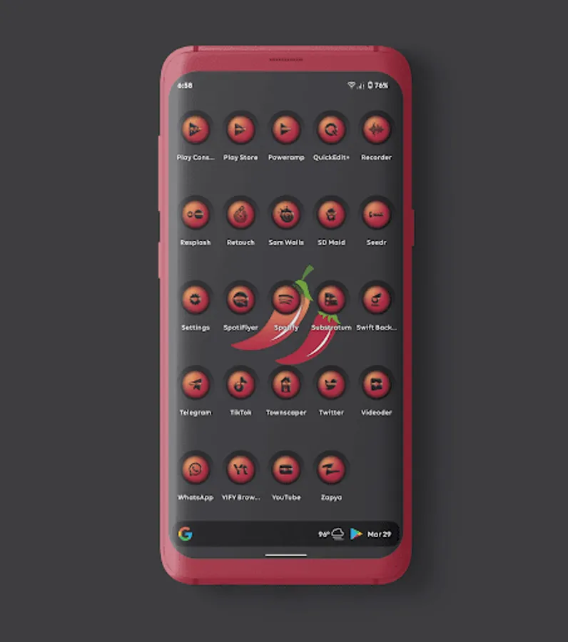 • Gleam Paprika Icon Pack, is a set of Modern heavy design, unique and Creative icon Pack with amazing attention with a mix Design scheme.