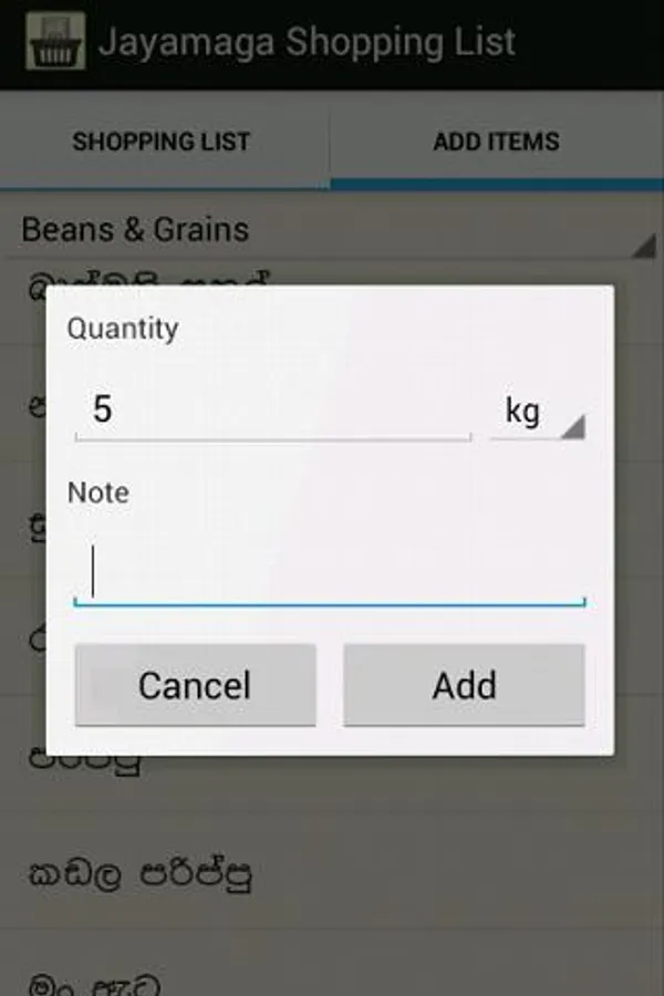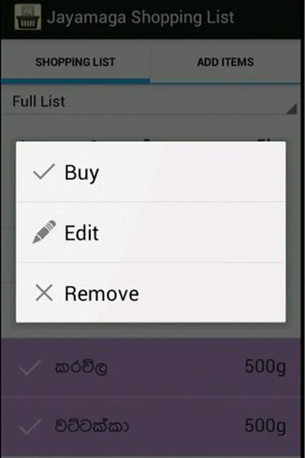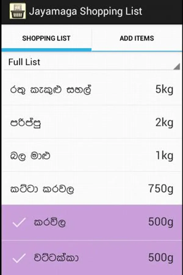 Now you can easily manage your shopping list in Sinhala. It is loaded with commonly used Sri Lankan shopping items in Sinhala. Jayamaga Shopping List is easy to use and always with you where you go when you need!