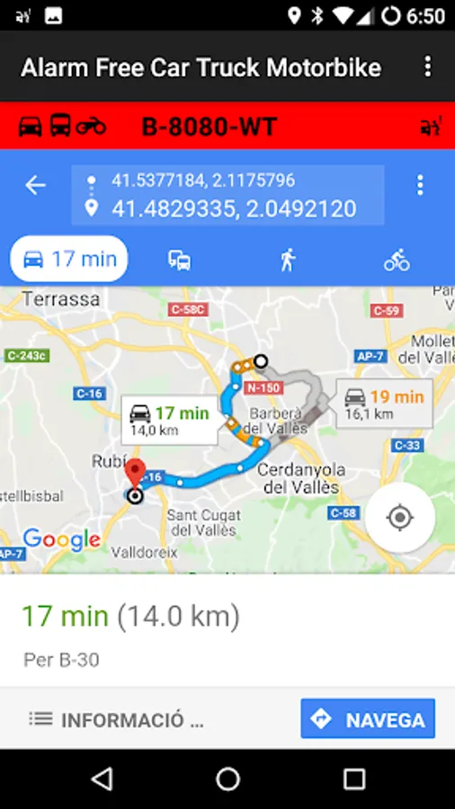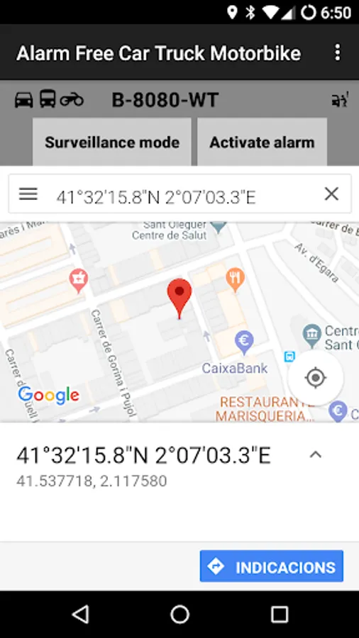 5. Restart app. Now press the button 'Surveillance mode', in few seconds you can retrieve data of your travel till the vehicle has stopped