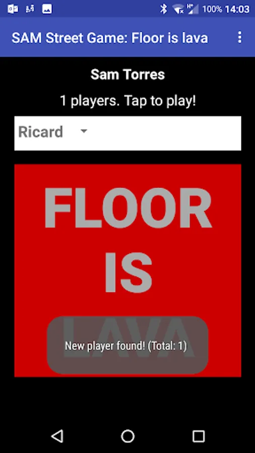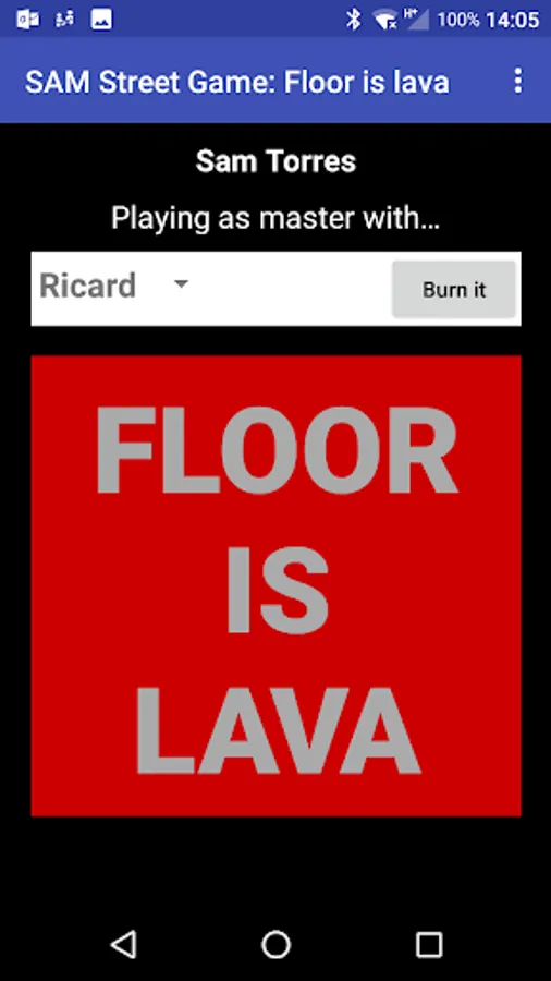 Players are automatically searched, one of them will be the master of the game ordering Floor is lava.