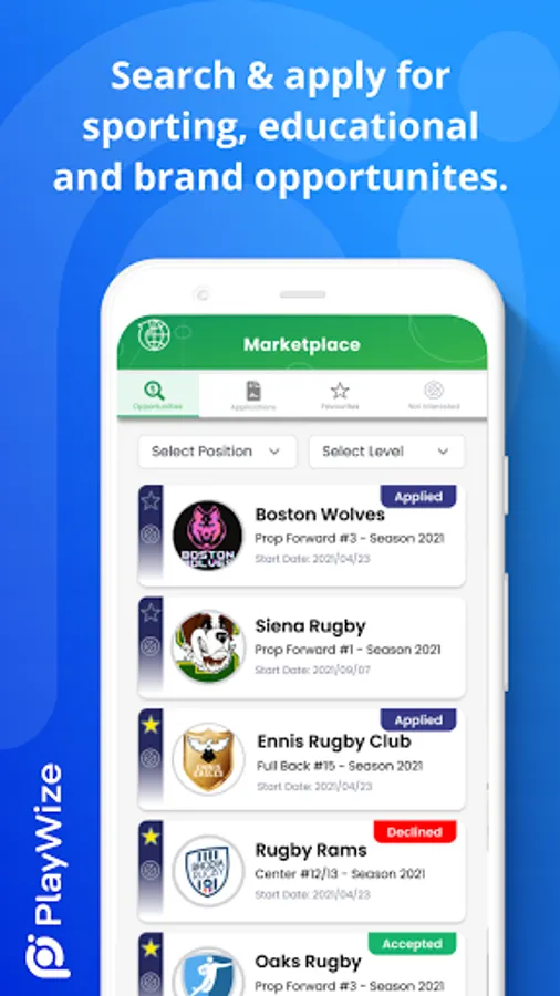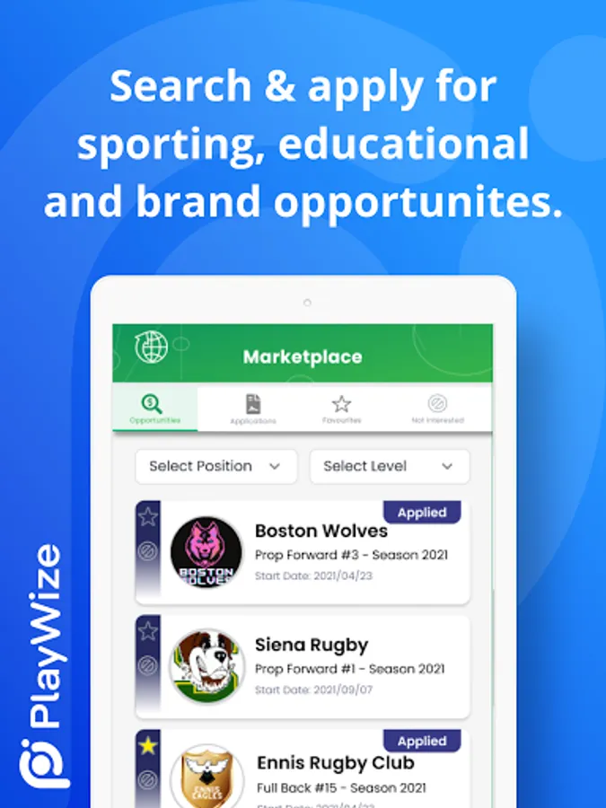 With PlayWize Athlete you can create your profile for free, adding highlights videos, agent details, social media and more. You can then apply for sporting, educational and brand opportunities all over the world.