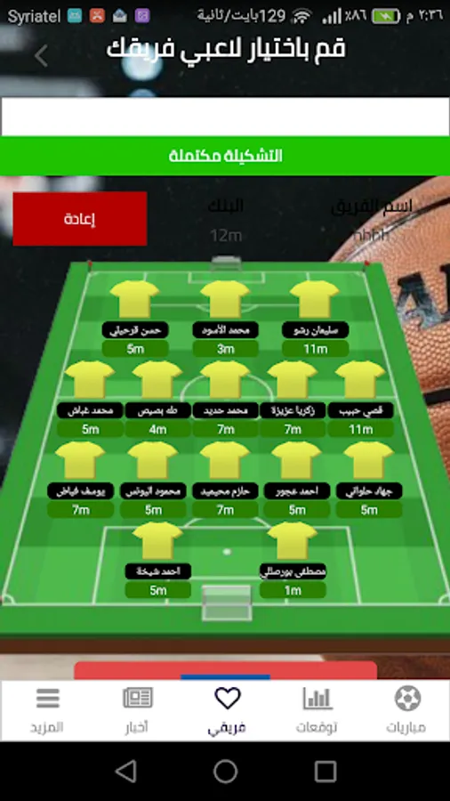 Syrian League Fantasy Game: Choose your fantasy team of 15 players...