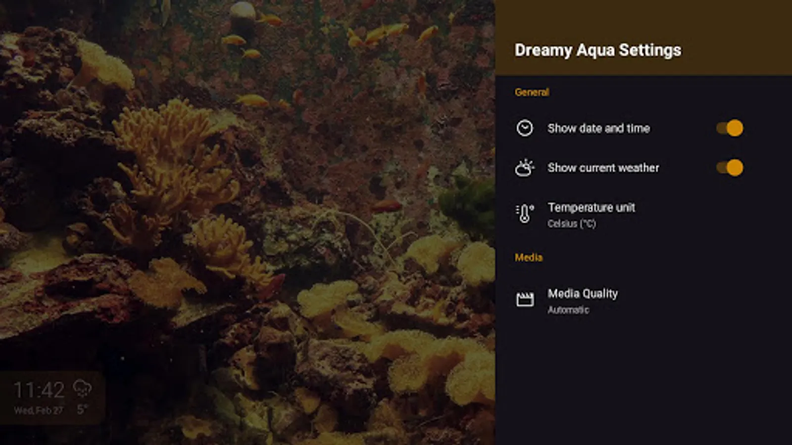 Dreamy Aqua could also be used as a regular TV app. Just open the app from the TV home/apps screen and it will show the aquarium instantly.