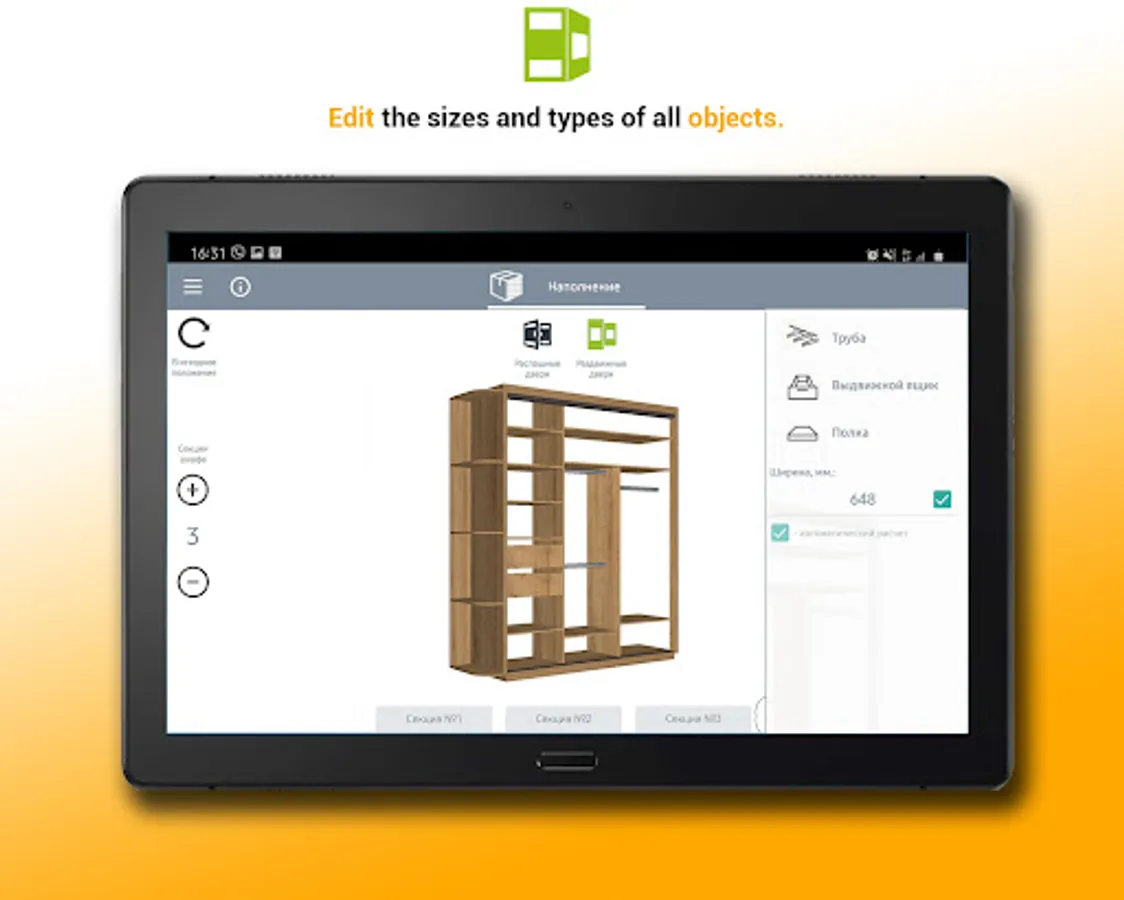 With our application, you can quickly create the design of your wardrobe and make it yourself.
