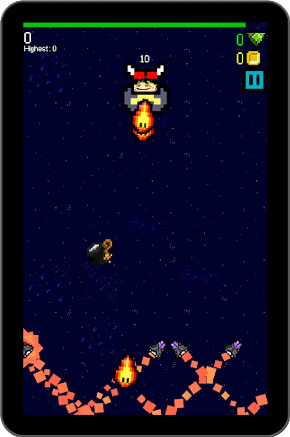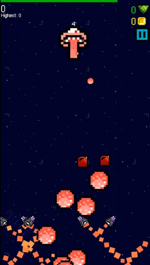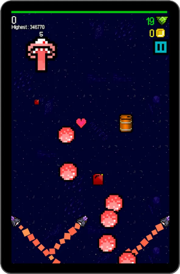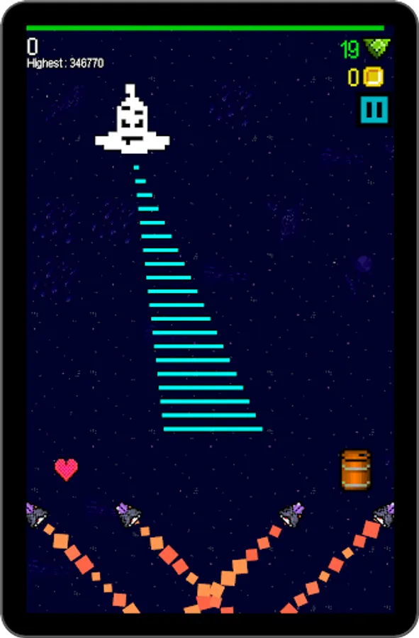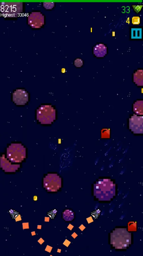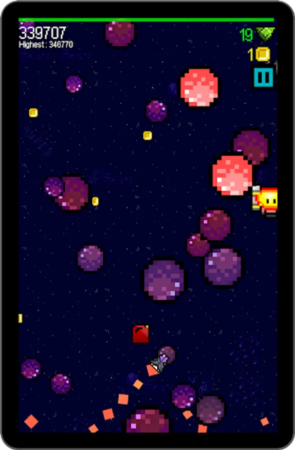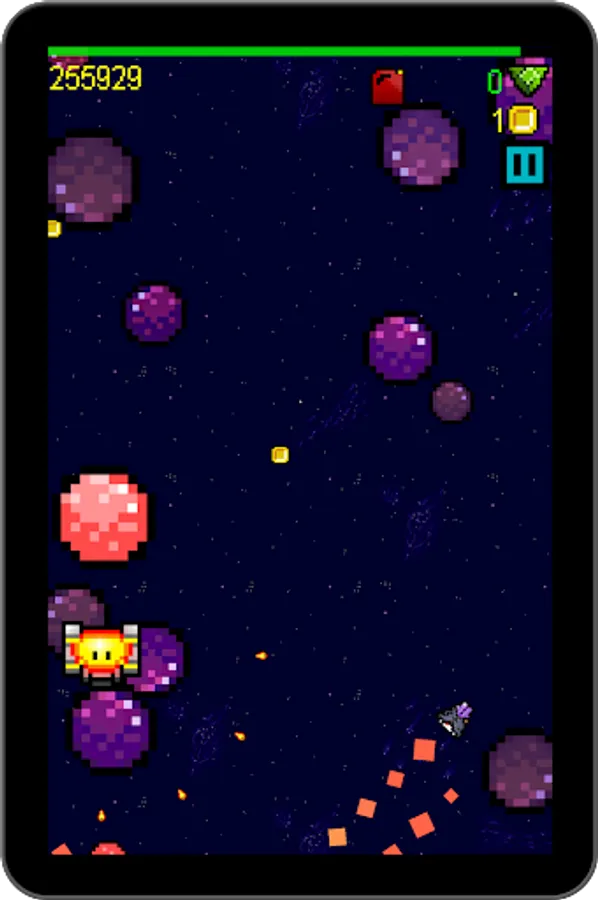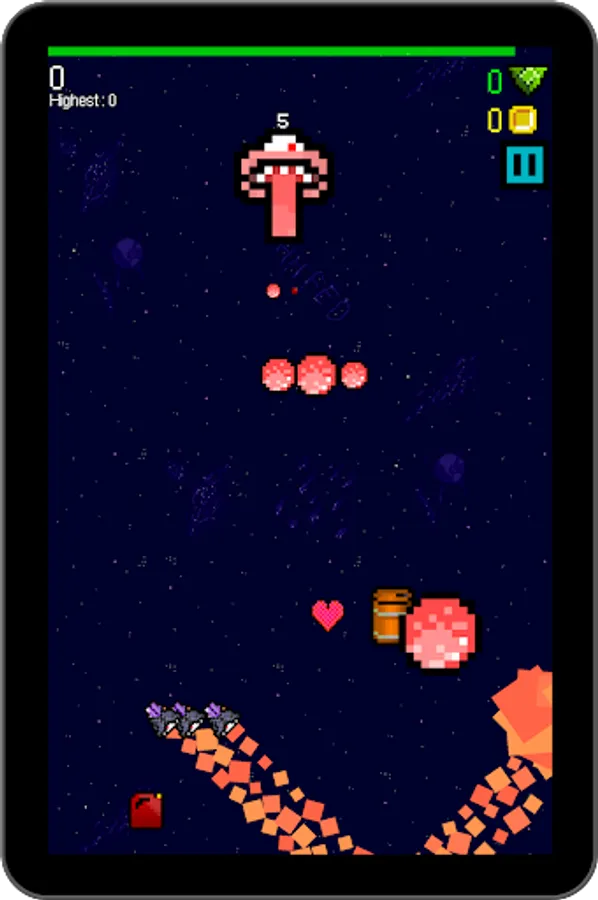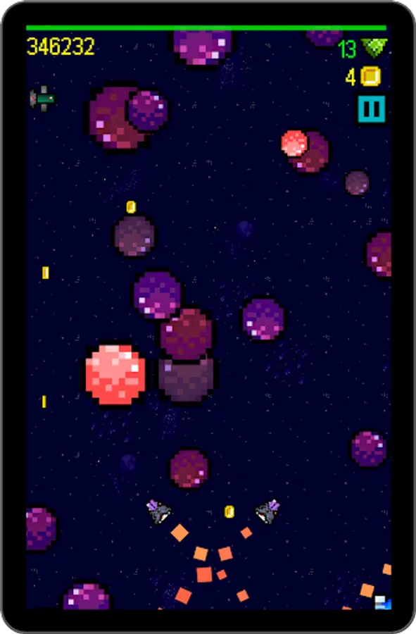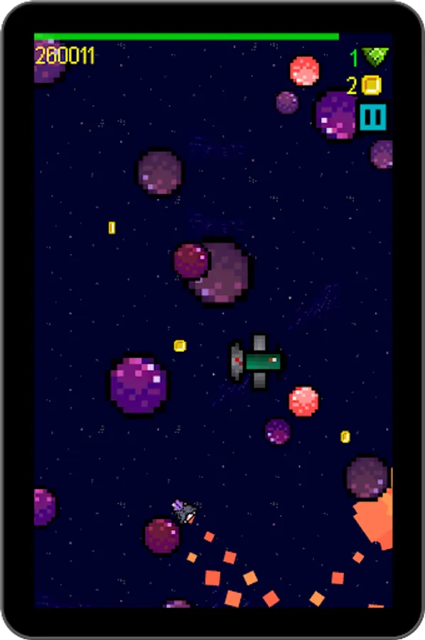 But out of this simple core, there's lots to do. Dodge asteroids. Fight bosses. Grab coins and fuel. Choose your powerups. Compete for the top of the leaderboard. All this and more in SPLITSPACE, by HH FED.