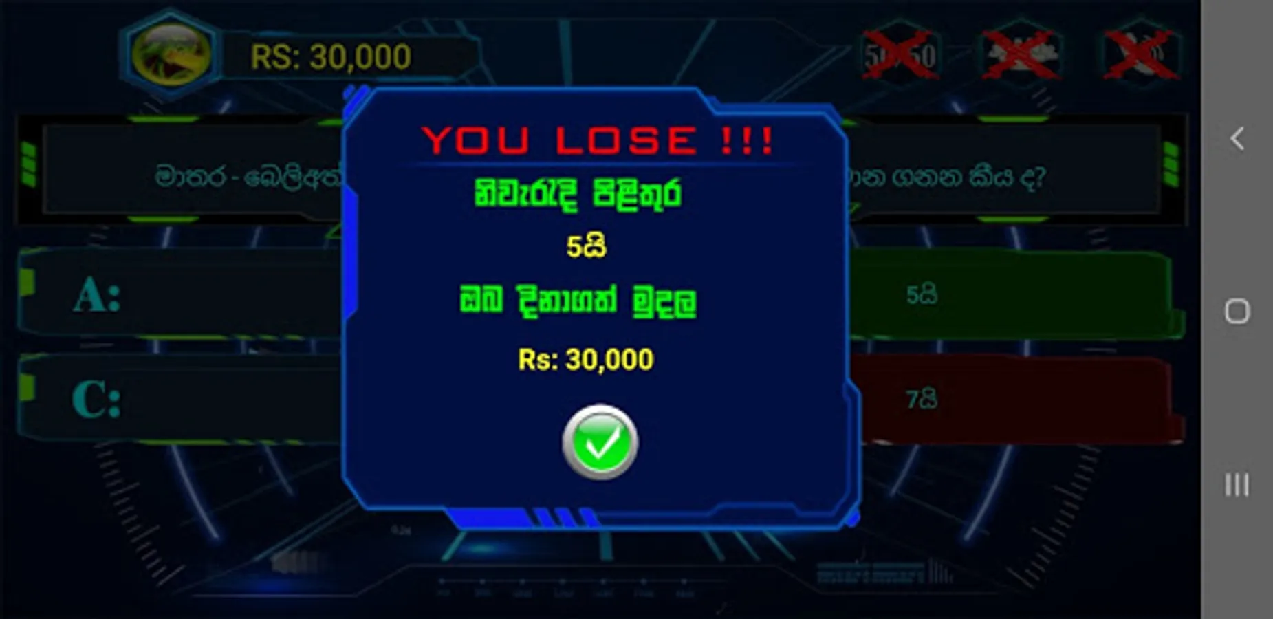 The other interesting fact is that, Lakshapthi Game app is designed according to the format of famous general knowledge reality show "Who wants to be a Millionaire?" Therefore you will have an amazing and unforgettable experience by using this app.