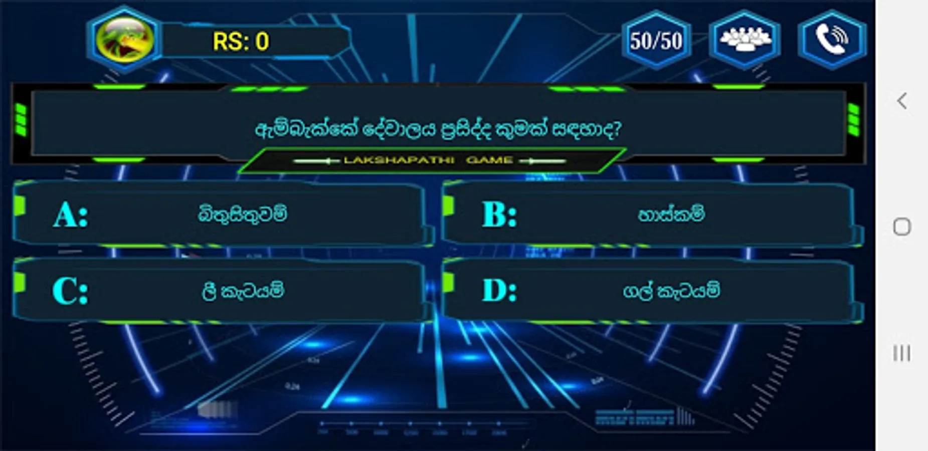 The Lakshapathi Game is an app that serve a vast amount of general knowledge for users. The specialty of this app is, it covers the general knowledge in different aspects. Science, Traditions, Cultures, Art and Music are some of them.