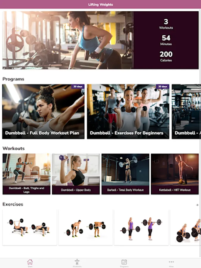 This app will walk you through how to get started with weight training and provide suggested exercises and training advice (plus 30 day programs!) for beginners.