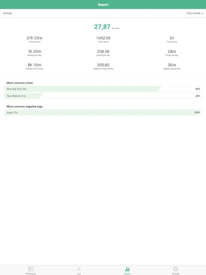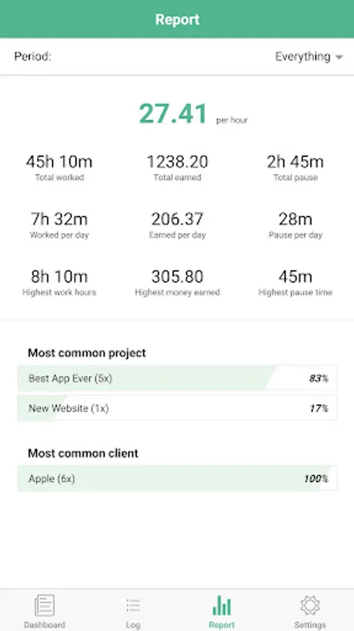 Easily track your work hours - organize, analyze and export them. Perfect for freelancer, hourly workers, employees or anyone else who wants to keep track of his or her working time.