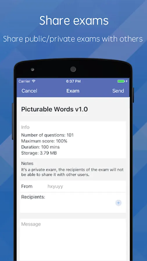 If you are a teacher, sharing exams is an alternative way to assign homework to your students. If you are a student, share your study quiz with your classmates and test each other as much as possible in order to discover even more details and areas you may have overlooked.