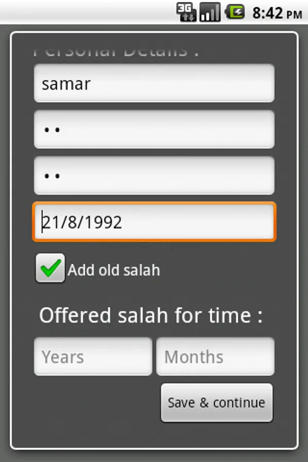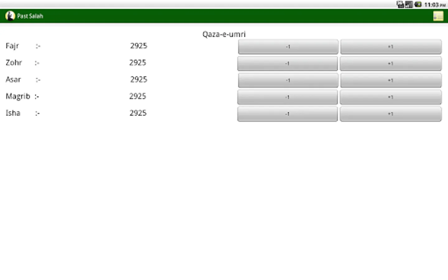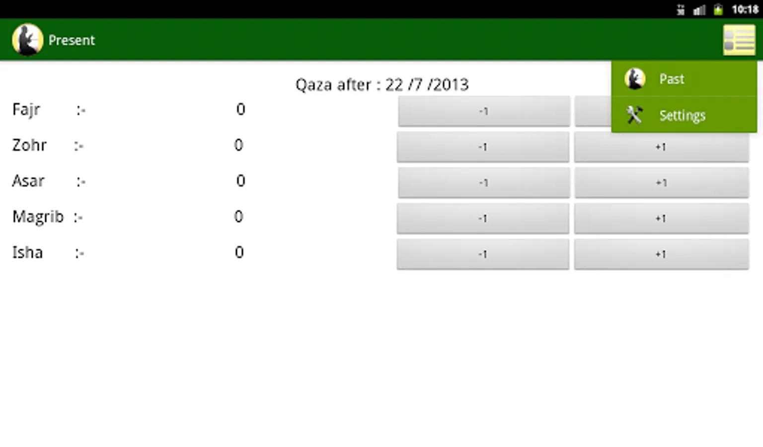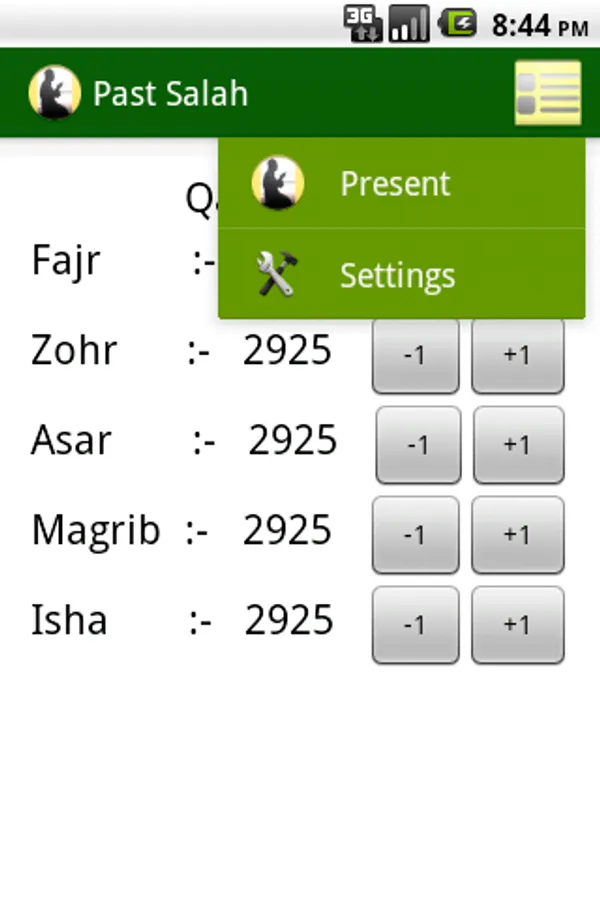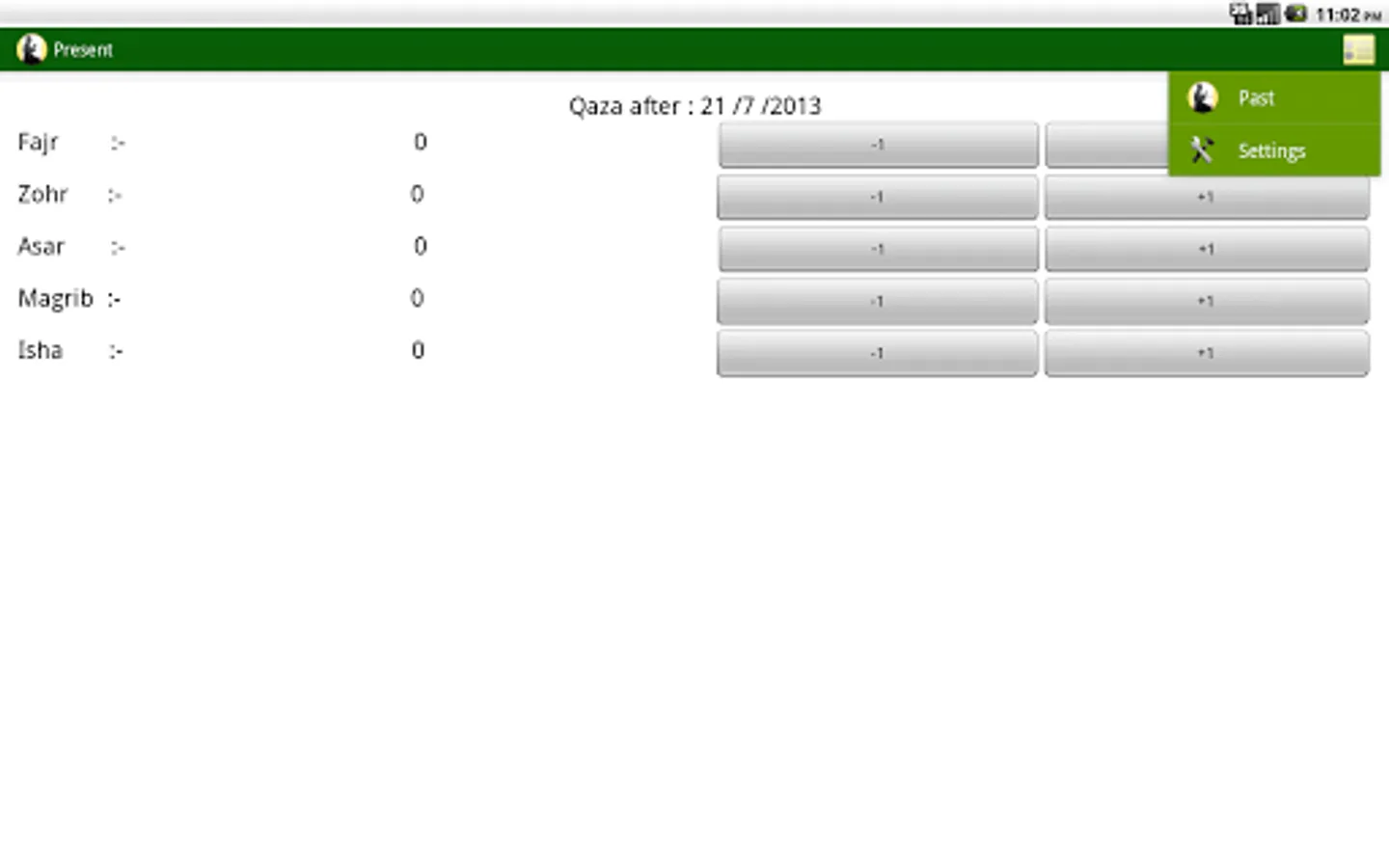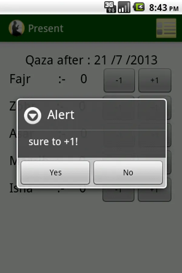 3. A page for managing qaza after the day you start using the app.(Present)