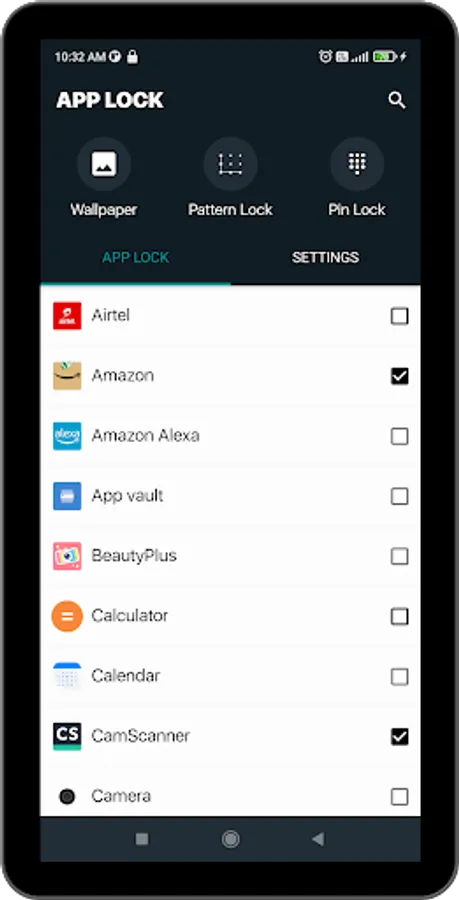 ▶AppLock has multiple lock options: PIN Lock,Pattern Lock and Fingerprint Lock choose your favorite style to lock apps .