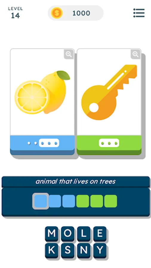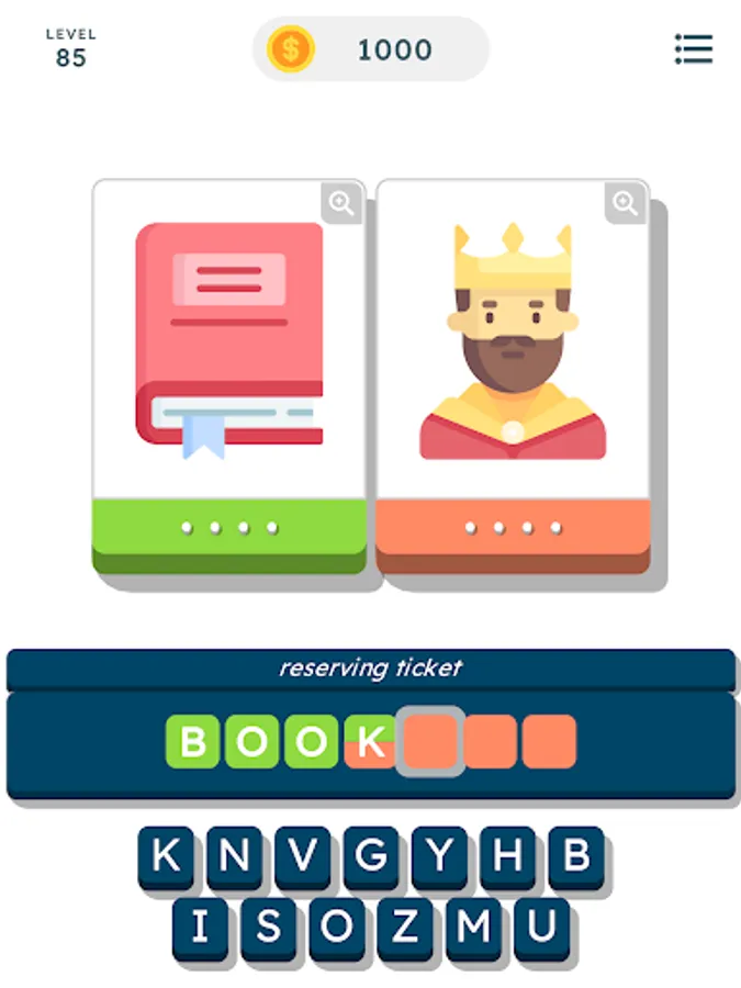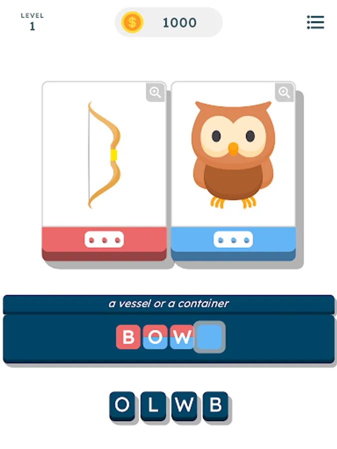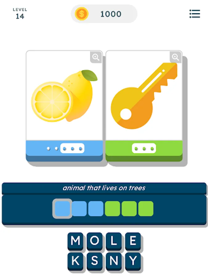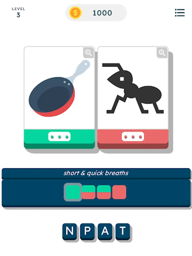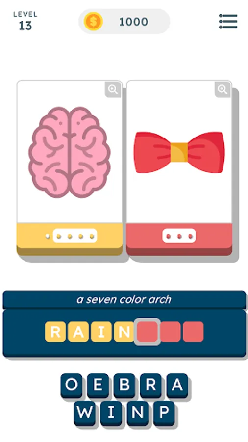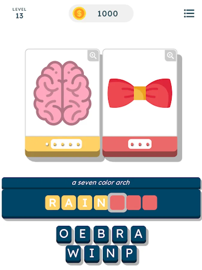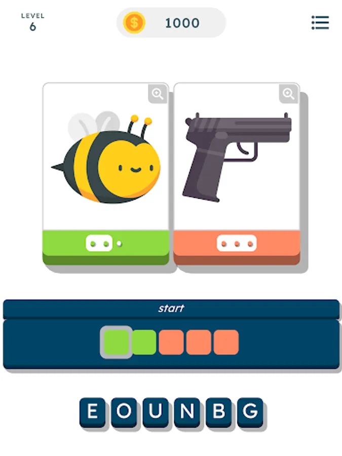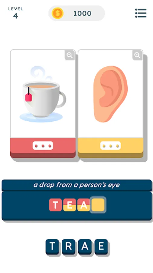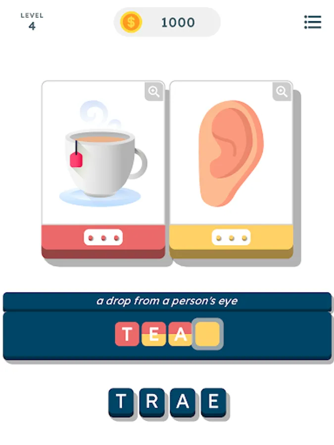 As you know, words are just words that are made up of other words. So we bring you a brand new charades-inspired word-guessing game. But you don't have to act or draw out words. We split the word to be guessed into multiple unrelated words and present those words in the form of pictures (2 pics, 3 pics or even 4 pics). Your job is to go in reverse and reach the final word by recognizing the pictures and then merging the letters.