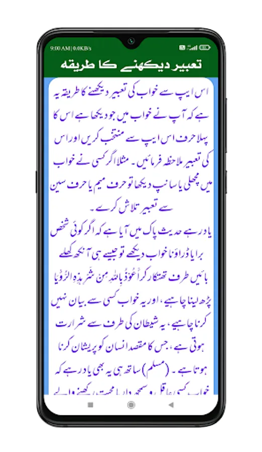 After installing Khwab Ki Tabeer | خوابوں کی تعبیر mobile App you can read Khwabon ki tabir in Urdu (خواب کی تعبیر اردو) and also know Khab Ki Tabeer in Urdu Language (خوابوں کی تعبیر اردو میں) with many useful features.