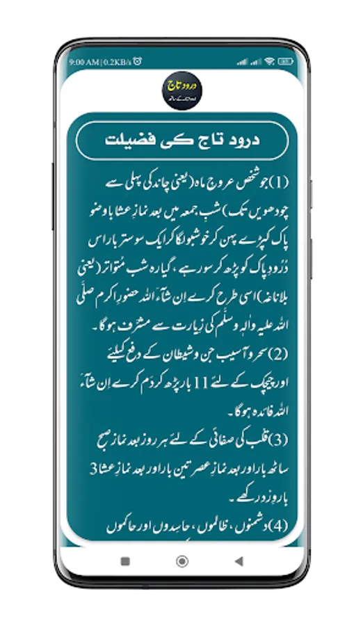 After installing Durood e Taj | درود تاج mobile application you can read durood e taj pdf Arabic and Urdu which is also called Durood-e-Taaj or Darood Taj (درود تاج شریف) with many useful features. If you are looking durood e taj dawateislami (درود تاج دعوت اسلامی), durood e taj lyrics in arabic and durood e taj benefits (دورد تاج کی فضیلت) so, it is for you, in this app you can read durood e taj Arabic and durood e taj Urdu with Darood e Taj Audio.