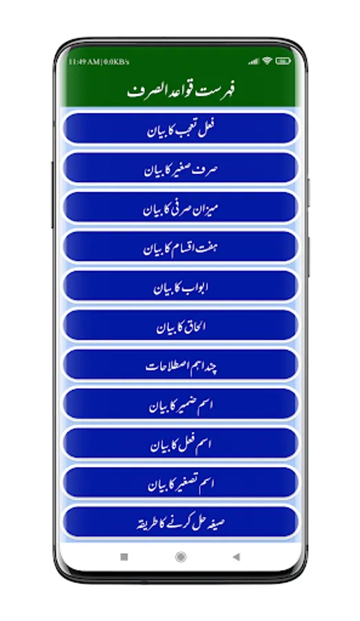After installing Qawaid us Sraf | قواعد الصرف اردو mobile App you can read Sarfi App (صرفی) with Sarfi Tahqeeq (صرفی تحقیق) and Qawaid Loghtul Arabiya (قواعد اللغۃ العربیۃ) in Urdu Language with many useful features.