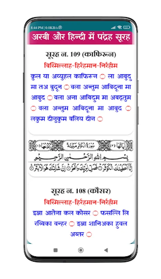 This is Hindi Surah app in Hindi (हिंदी सूरत की किताब) you can also call it Hindi Quran for learn Quran Shareef. If you are looking how to read Quran Pak in Hindi (क़ुरान शरीफ) so it is for you. Through this app you can read Hindi Quran Suraten (हिन्दी क़ुरान की सूरतें) and Namaz Ki Suraten in Hindi. This is totally offline mode and don’t need to download to read kuran sharif hindi mein.