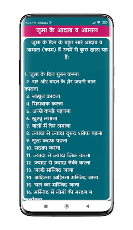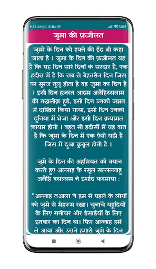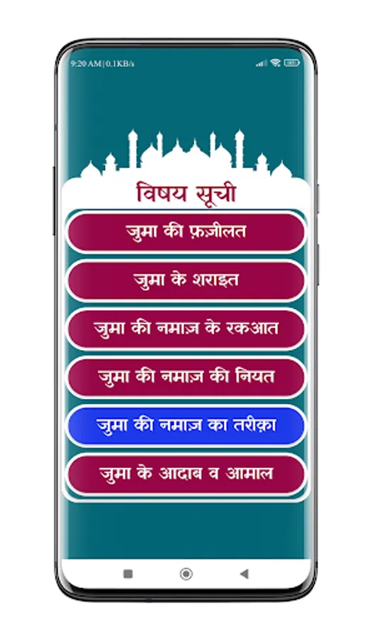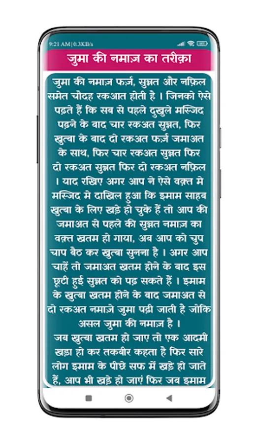 After installing Juma Ki Namaz | जुमा की नमाज़ mobile App you can read Namaz e Juma ka tarika in Hindi (नमाज़े जुमा का तरीक़ा) with many useful features.