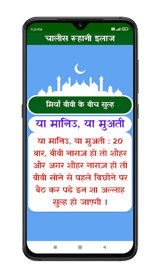 After installing Ruhani Ilaj | रूहानी इलाज mobile application you can read more than forty Rohani Ilaj in Hindi language. in this application also included Tibbi Ilaj (तिब्बी इलाज) in Hindi Language.